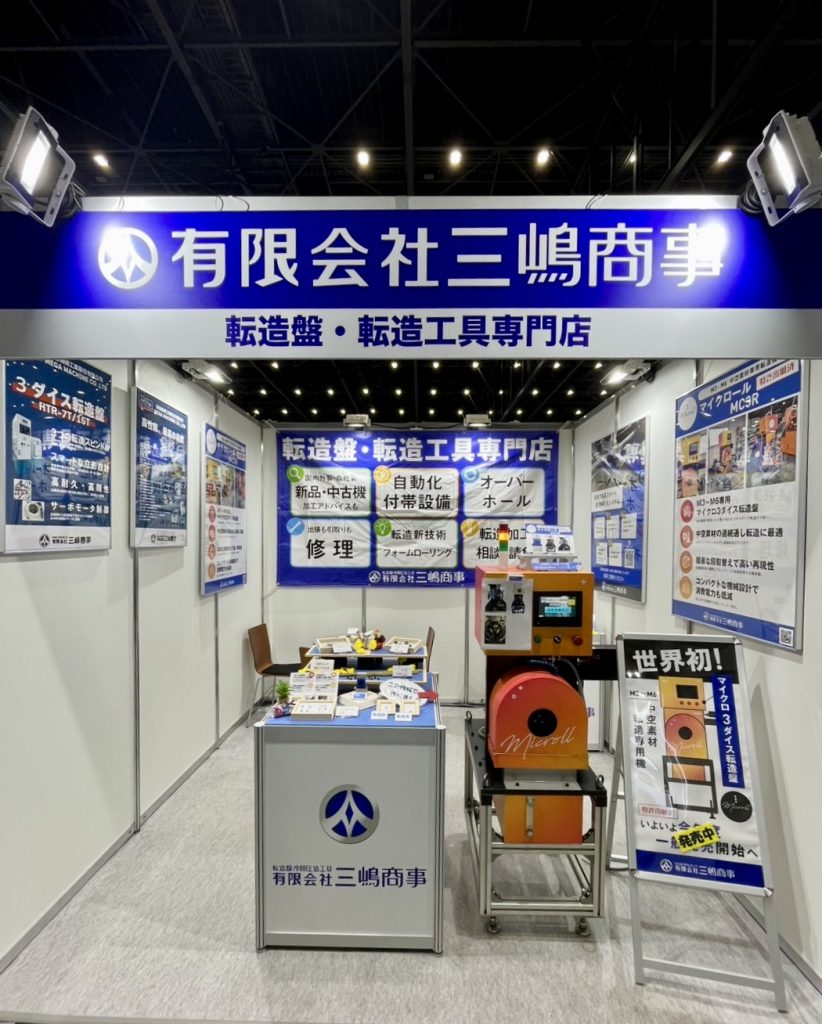 当社ブースでは自社製転造盤マイクロールのPRを中心に行い、小物中空素材転造に特化した機械であることをお伝え出来たと思います。